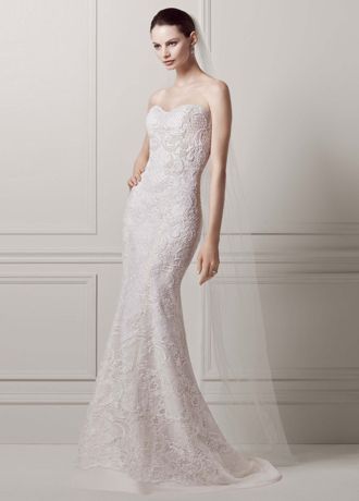 from Strapless Lace Sheath Gown with Pearl Beading. Source Image: www.davidsbridal.com. Visit this site for details: www.davidsbridal.com